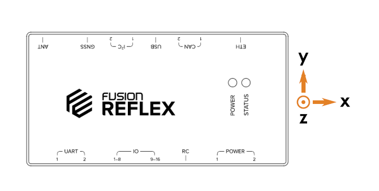 The figure below shows the direction of the axes of the local coordinate system of the Reflex. The origin of the coordinate system is in the geometric centre of the Reflex.
